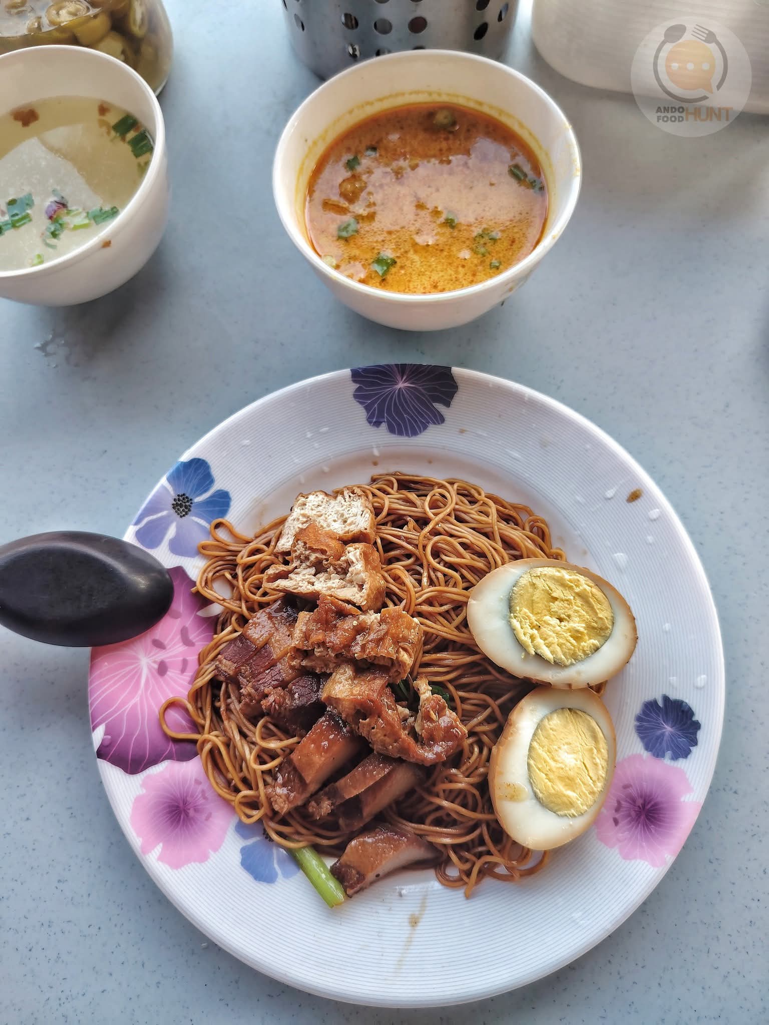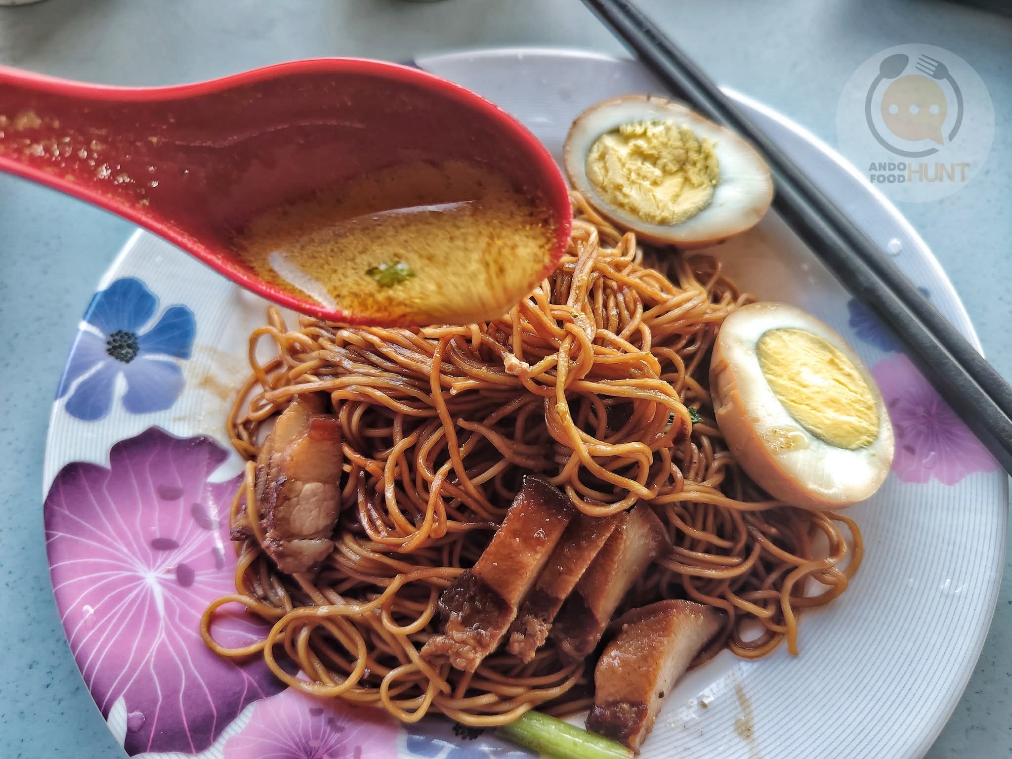 健談和善的第二代當家老闆。和他要了一份雲吞麵配滷味三拼,外加一小碗Laksa湯頭後待餐上桌。