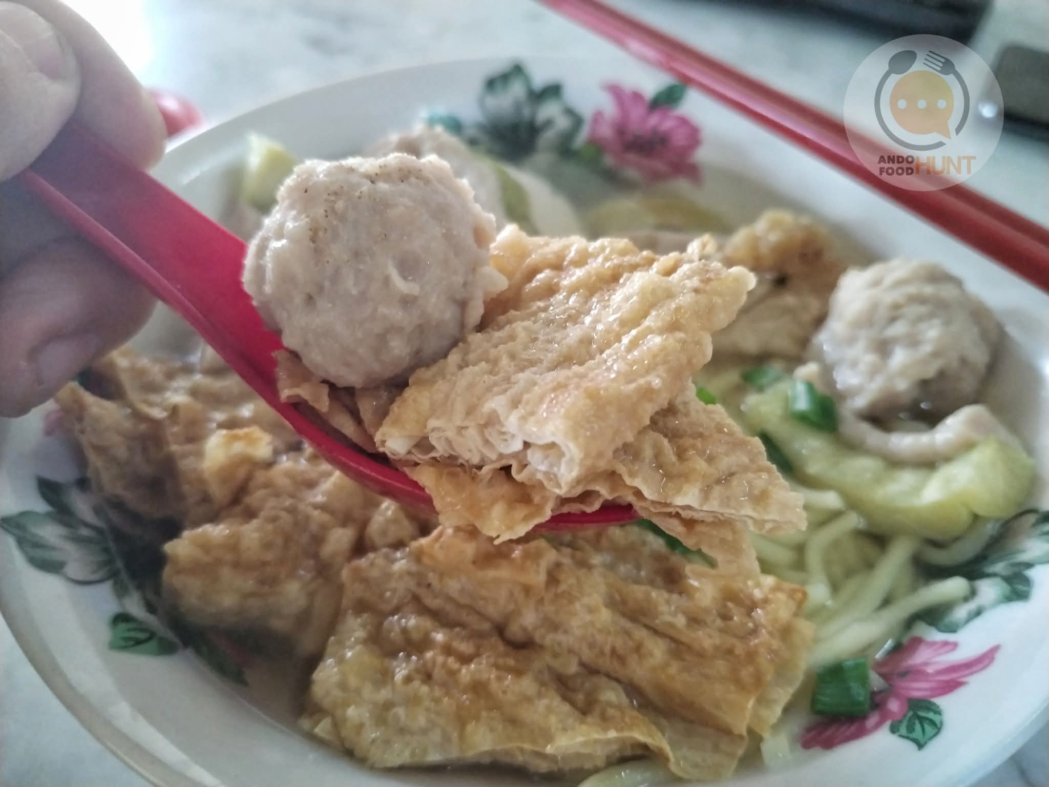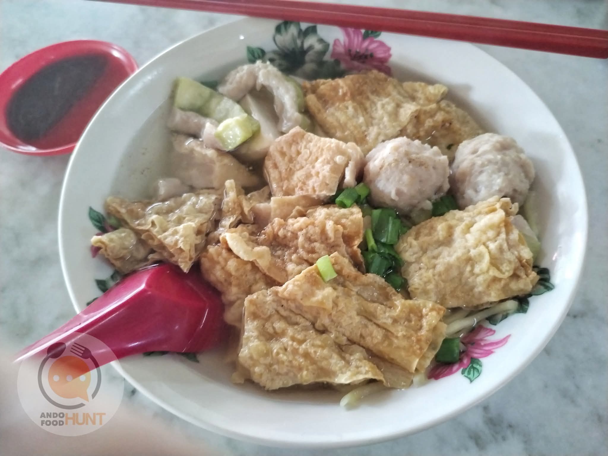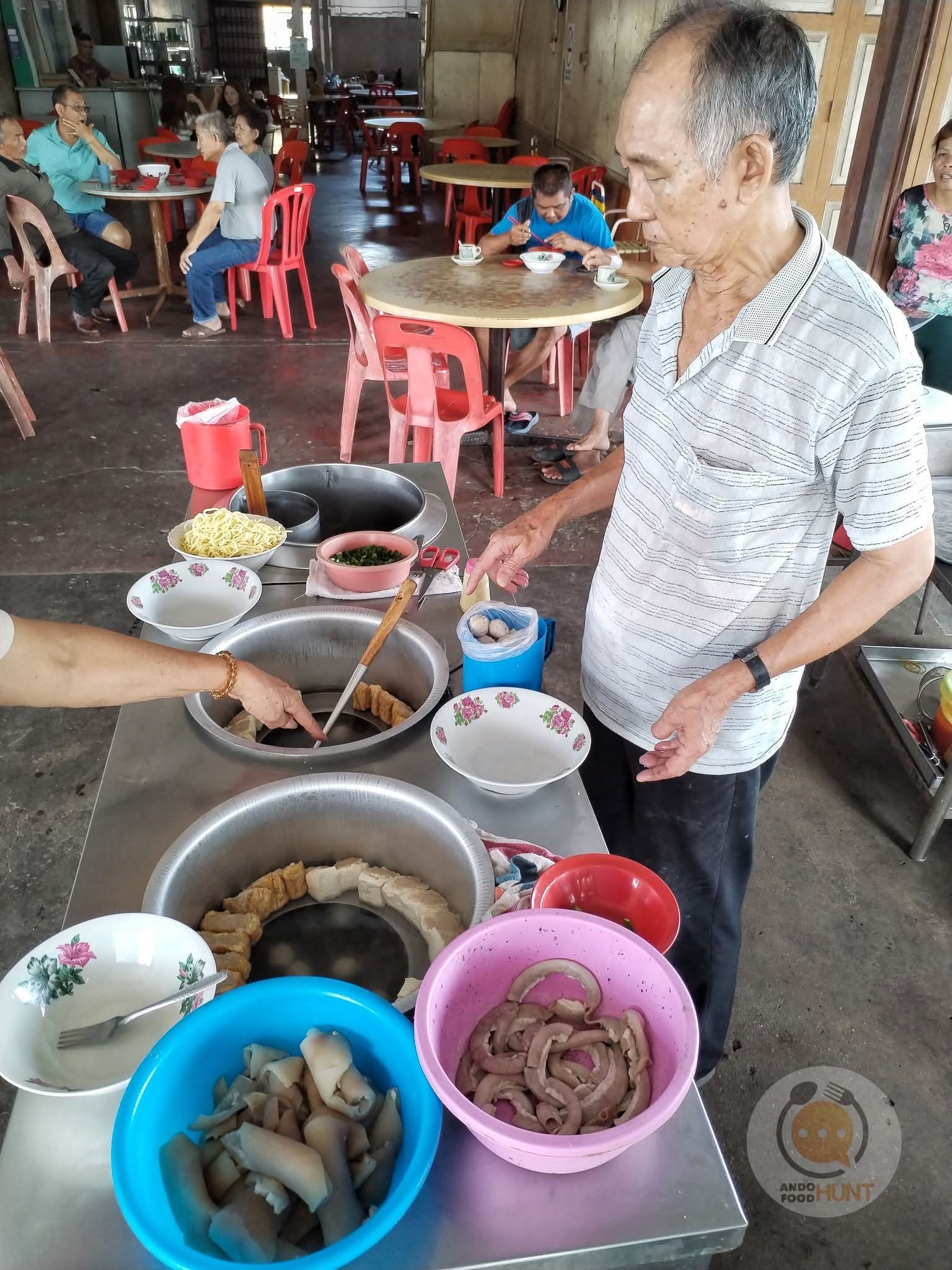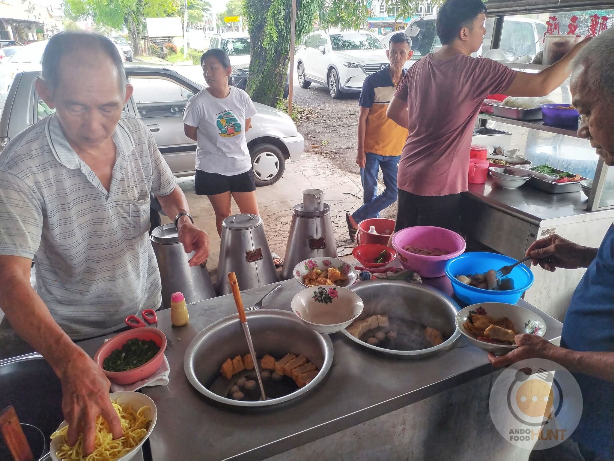 點了一份釀料黃麵湯,附加的醮醬是吃釀豆腐時會配搭的甜辣醬及黑醬油混合的醬料,份量很大,釀料幾乎把麵條遮掩起來一份RM8,屬於大件夾抵食了。