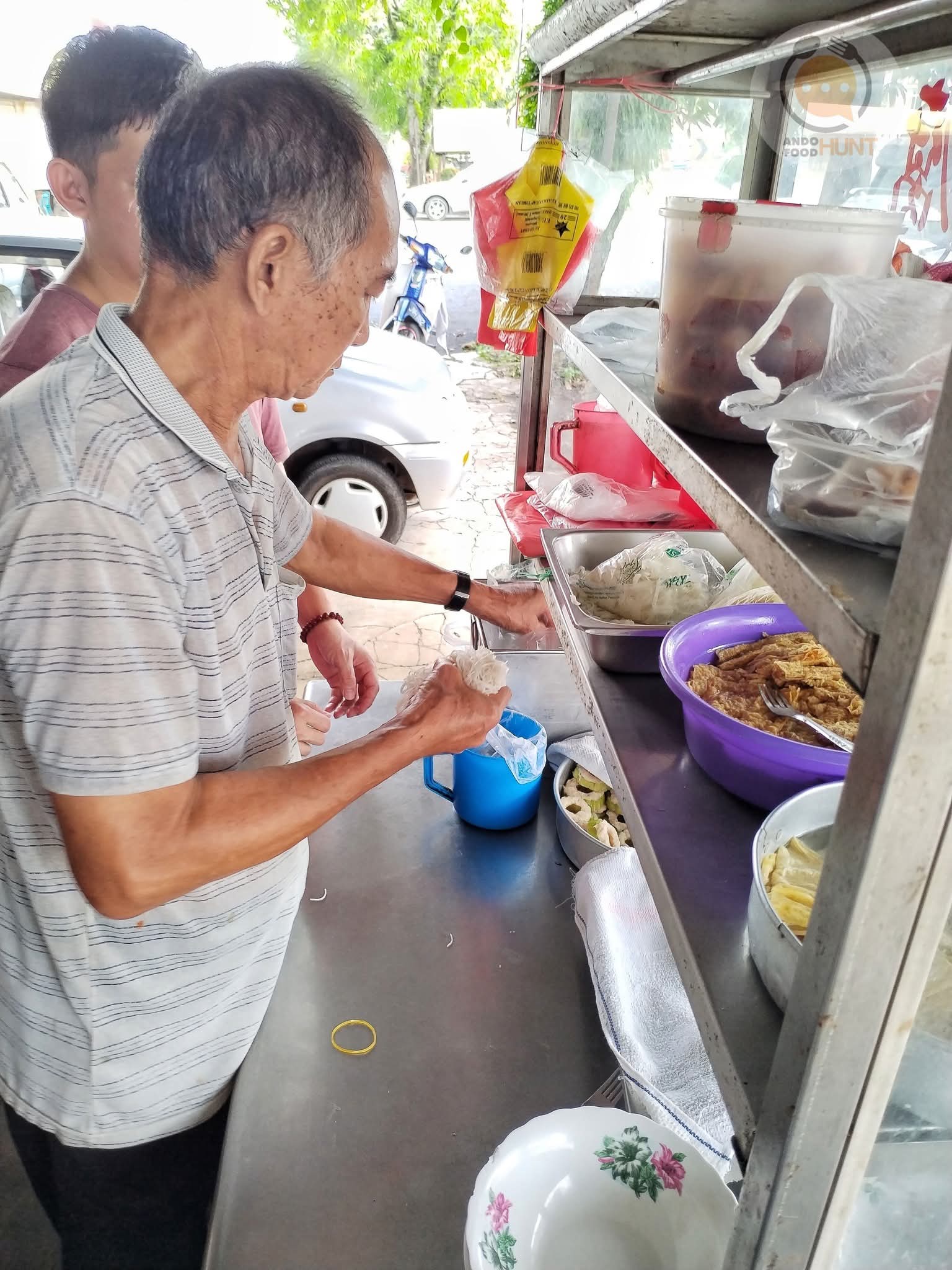 由第一代當家大堯開創,售賣的美食四寶,除了手工釀豆腐之外,還有自製的豬腸粉,水粿以及炒菜頭粿等,後麵三寶由另一兒子繼承另外開檔售賣。