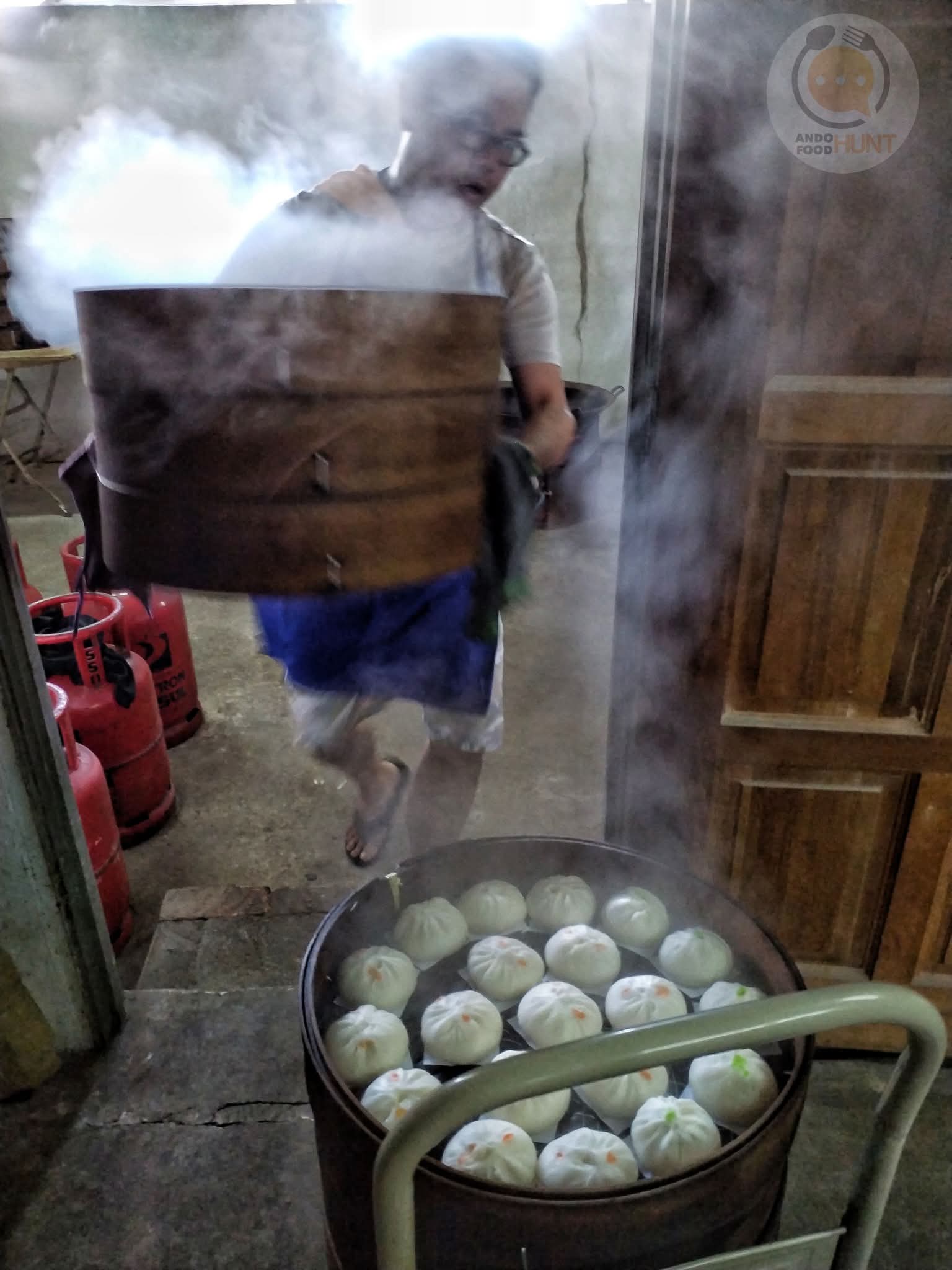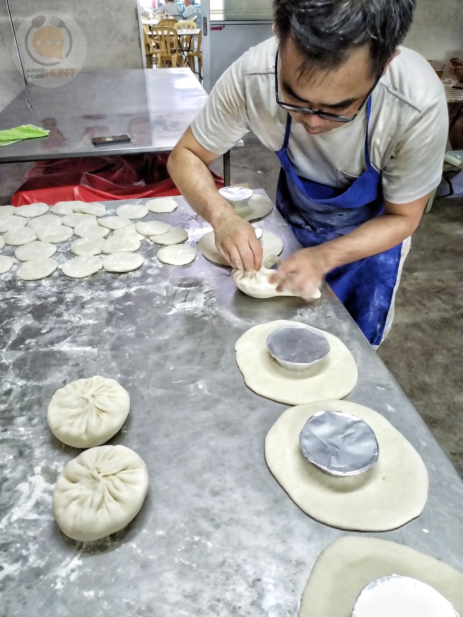 製作方式是將滿滿的咖哩豬肉片裝在糯米雞大小的錫紙杯裡,再以蓬鬆柔軟的手作包子皮包裹,蒸至外皮軟嫩且內裡的咖哩豬肉轉熱後上桌。