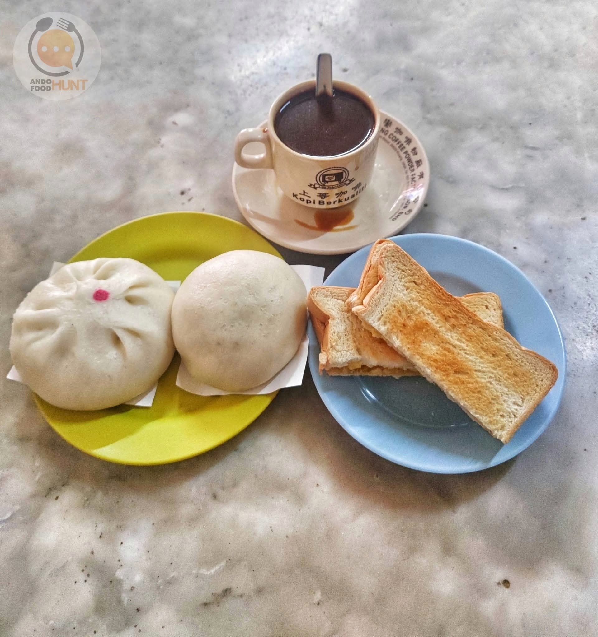 來上點手工包子,一杯香濃的海南老咖啡以及一份烤面包(很一般,畢竟主角是手工包子呢),古意盎然的早餐。