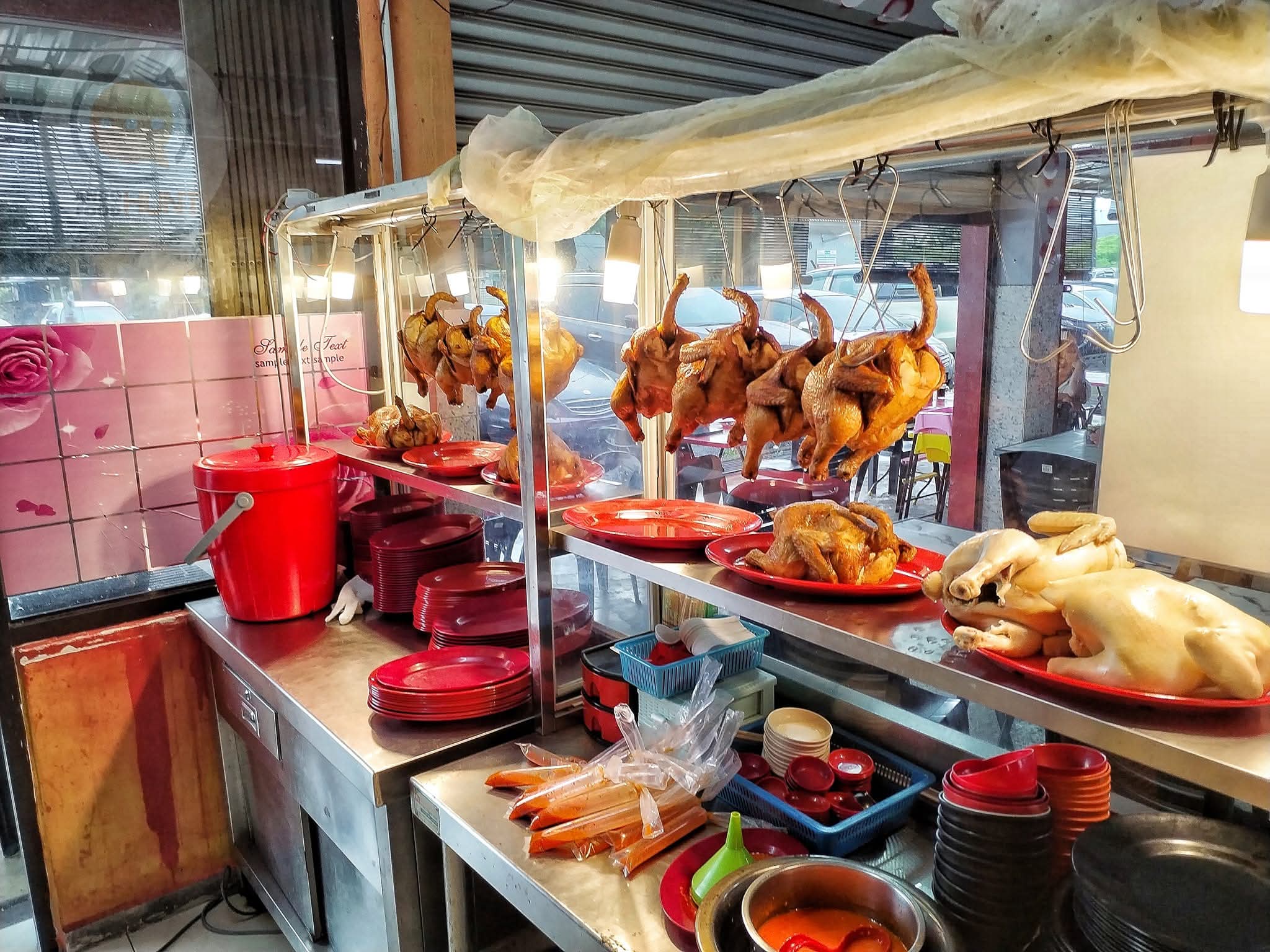 雞肉方面,極為難得看到是由印裔同胞製作,個別點了一份白斬雞和燒雞試試看。白斬雞的做法就不得不讚賞店家的用心。他們的白斬雞不是用懸掛的而是擺放著的。有點餐時才拿下來切開。雖然不能和市面上知名華裔的白斬雞比較,但其用心製作的白斬雞口感滑嫩細緻,也還不錯。