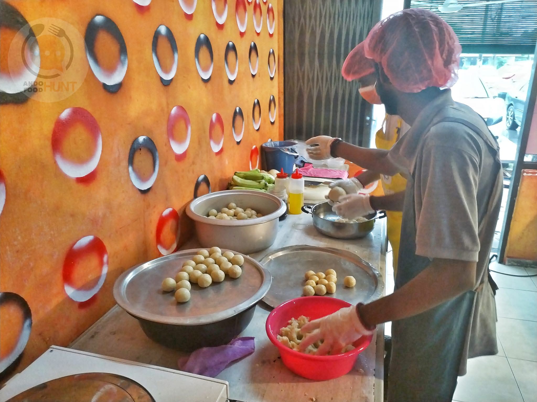 店主薩迪亞先生為我示範製作獨創的超大顆雞飯粒。由第二代的兒子創意研發,以八顆雞飯粒的份量捏製而出。也是店裡的一大特色之一。一粒RM4。