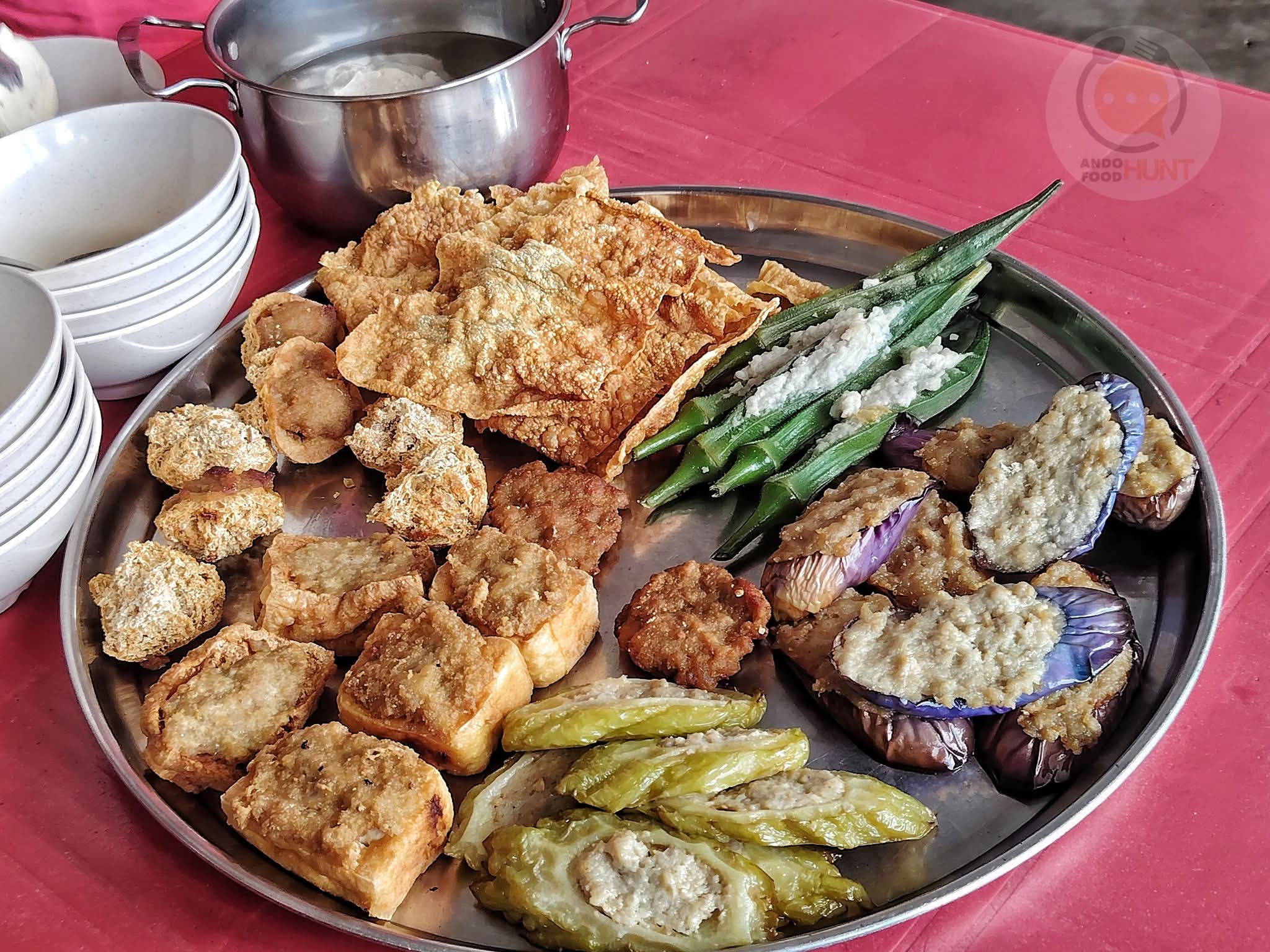 在豆腐蘭的魚丸麵,魚丸即是所謂的肉丸中混入了微微艦過的馬鮫魚在內,引出弹口鹹香的滋味,其餘釀料亦如此