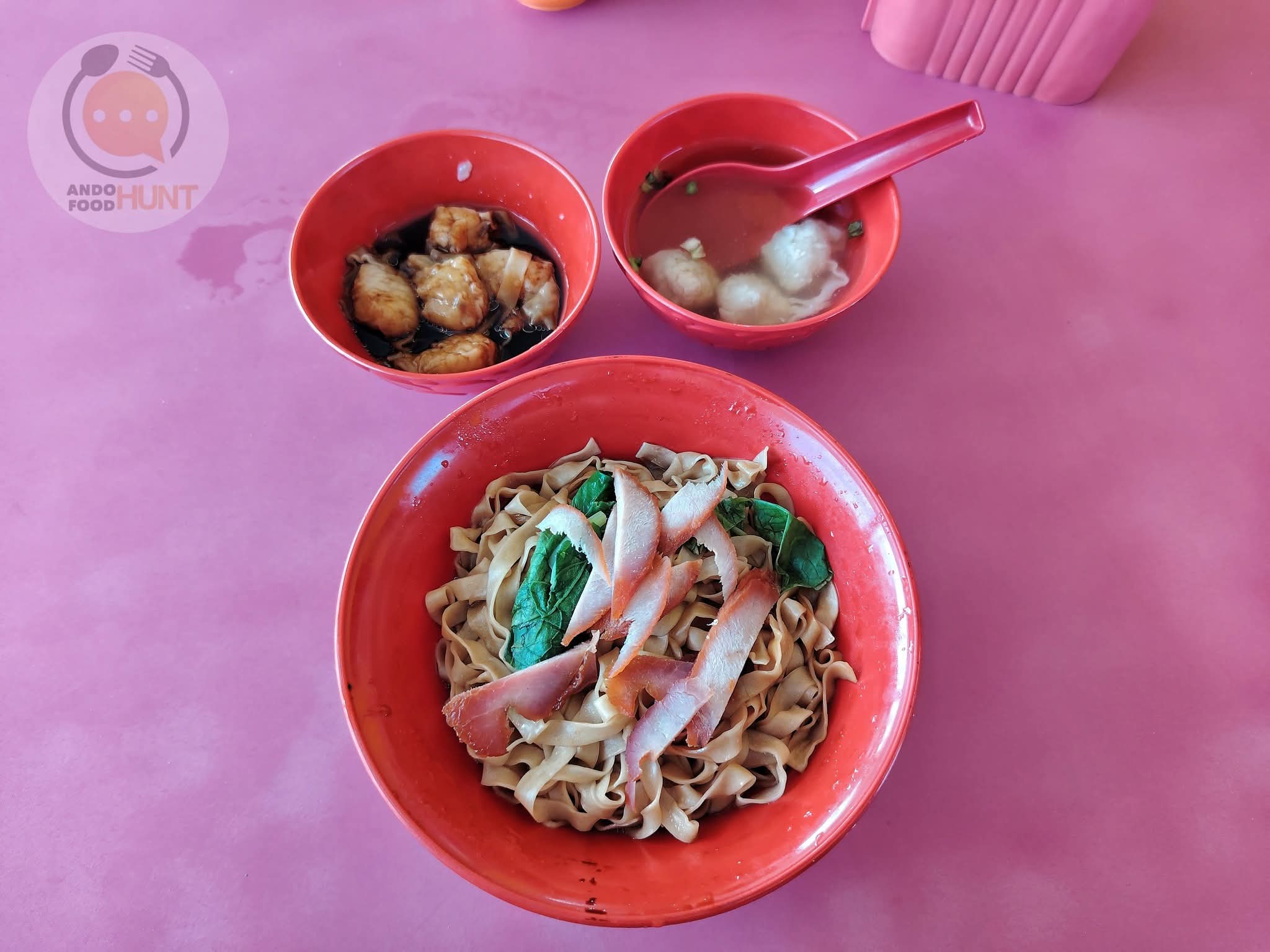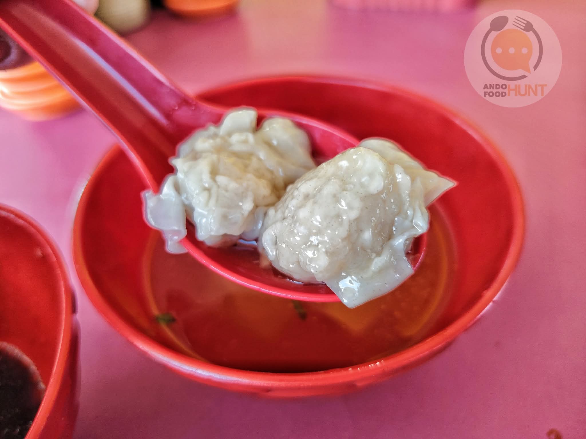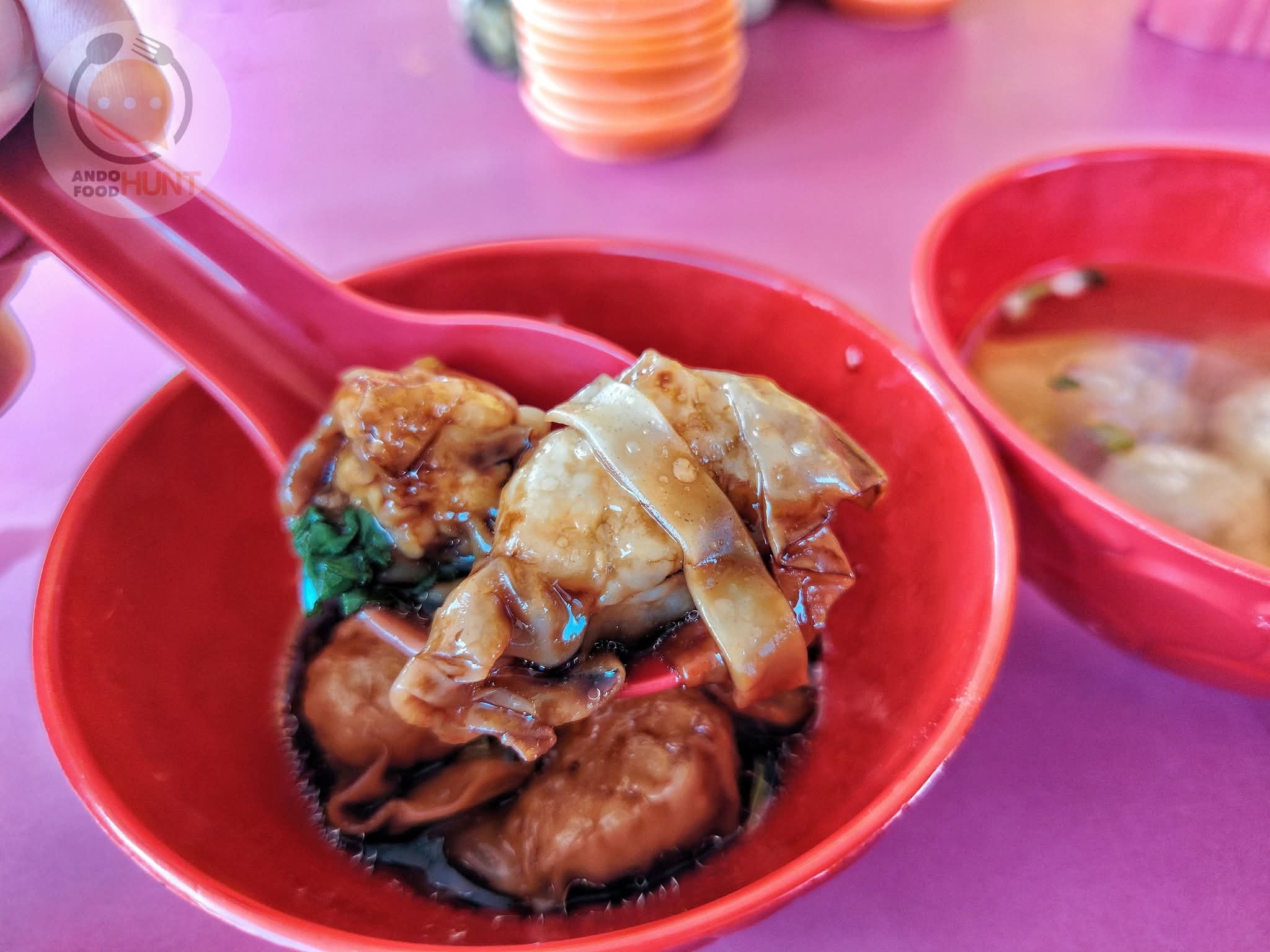 點了一份小的雲吞麵薄(RM7) ,額外再來五顆乾撈雲吞做搭配。麵薄燙得是恰到好處,吃起來滑溜卻口口筋道十足,醬汁拌一拌,風味較淡不惹鹹膩感,配著新村式的切片叉燒和皮薄餡足的自制雲吞,小份的一份倒是飽足卻好吃。