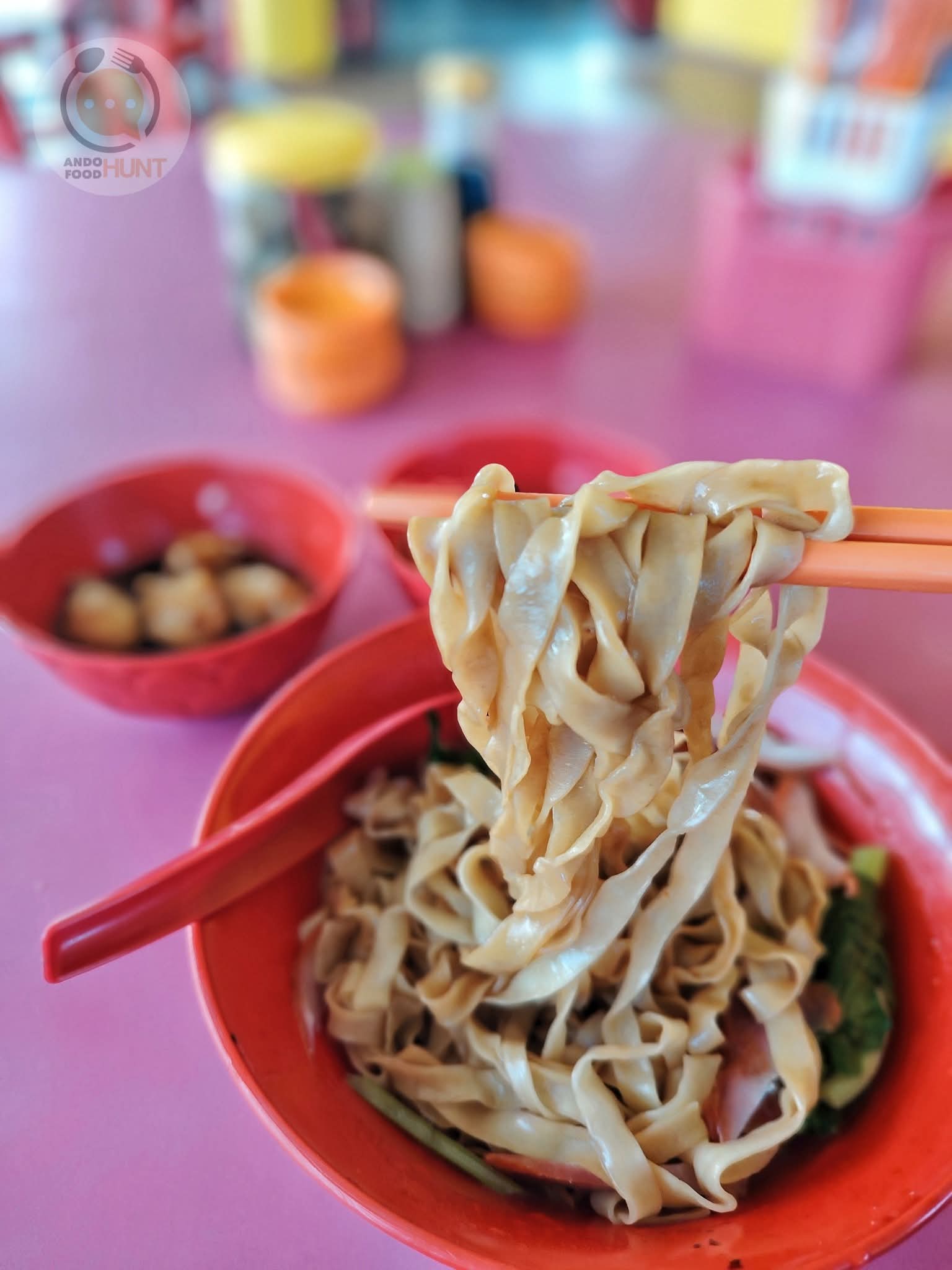 而後來了叫攪麵機器的協助,亦也進入半手工的製作工序。這裡難道可以看見手工製作的麵薄(Mee Pok), 對於一貫秉持有麵薄就不選幼麵這項原則的我來說自然不會錯過。