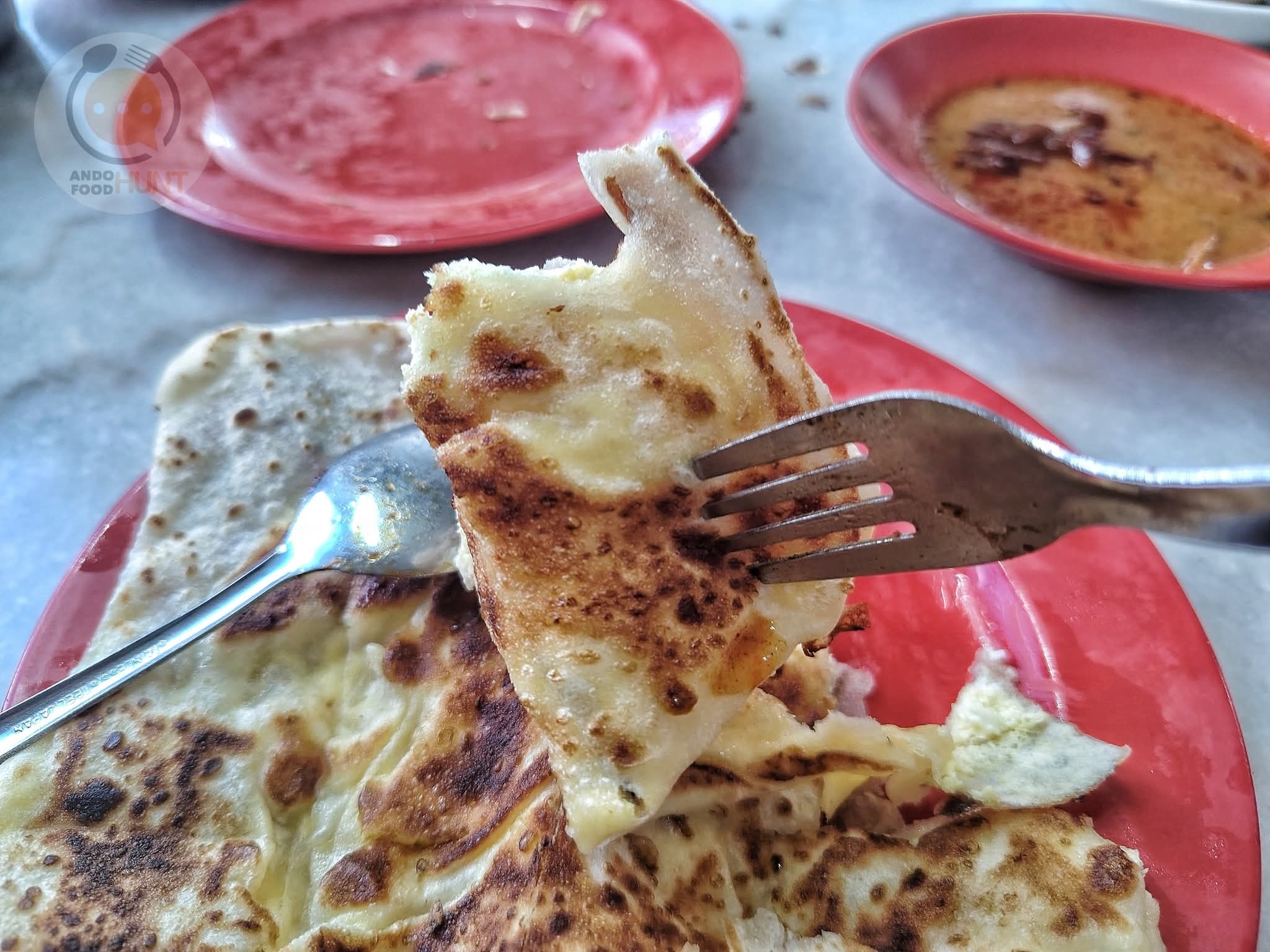 Roti Telur是傳統印度同胞的作法,可選擇要洋蔥或不要,我選後者,厚實鬆軟的餅皮夾帶著雞蛋,餅香及蛋香在沾上咖哩汁融合在口中,還是那個我喜歡的口感。