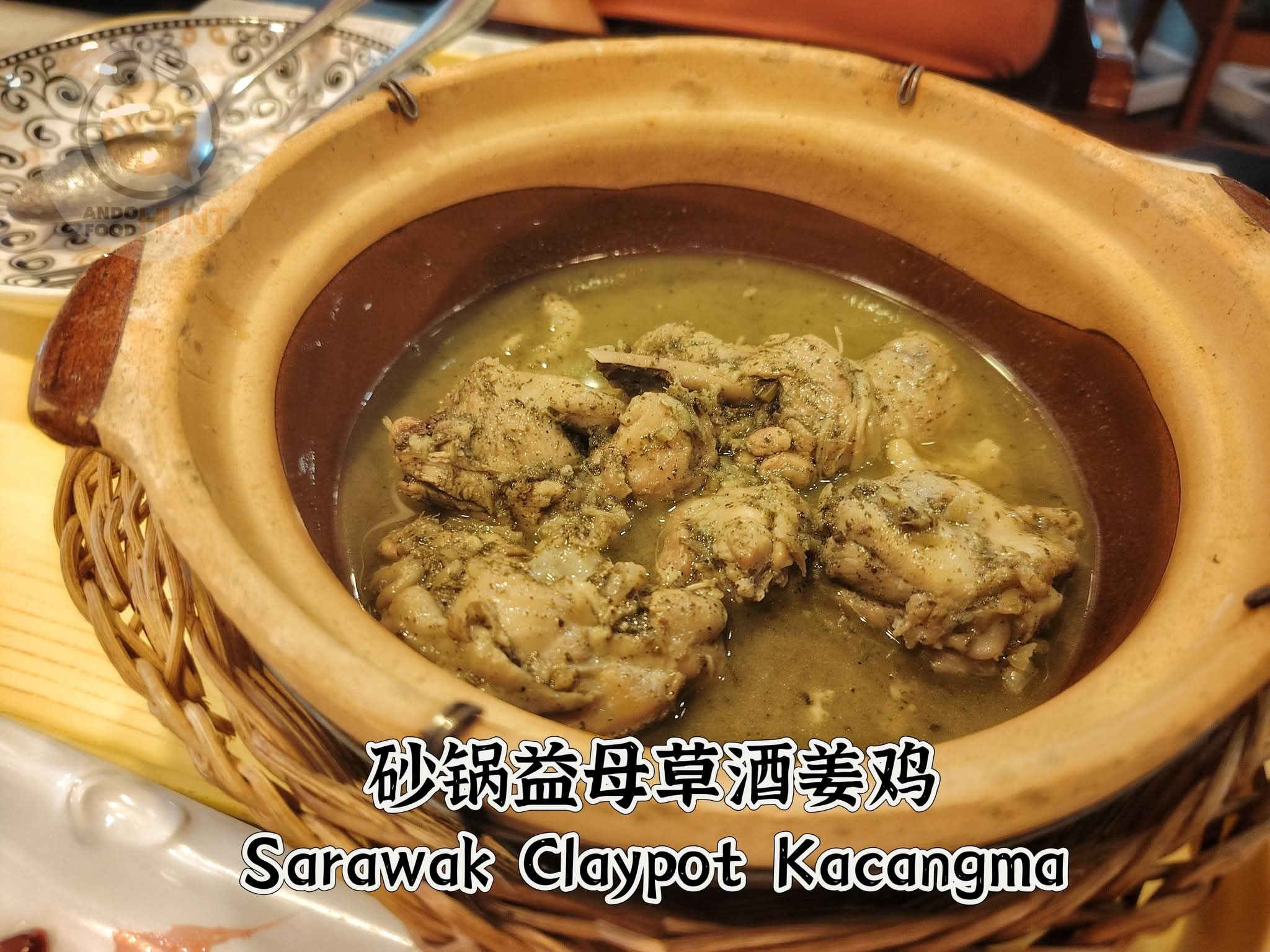 作為砂勞越比達友族的店家老闆娘先前推薦過的 砂勞越Kacangma一種源自客家人藥食同源的文化,以益母草,老薑及米酒入饌熬煮而成。風味帶有草本香氣,先苦後回甘,酒韻厚實但不燥,雞肉入味而嫩口的薑酒雞料理。