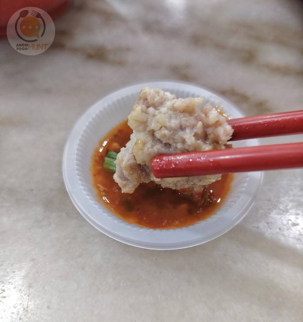 吃這裏的豬肉粉,就得配上傳承至檔主父親的食譜,以桔子,馬來盞(Balacan) ,小辣椒等混合攪拌後製作而成的秘製辣椒,開胃的辣勁伴隨尾韻一絲酸香,形成了一道民眾都深受共鳴及喜愛的配搭。